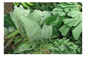 The high fiber content in cocoyam leaves aids digestion and promotes a healthy gut.