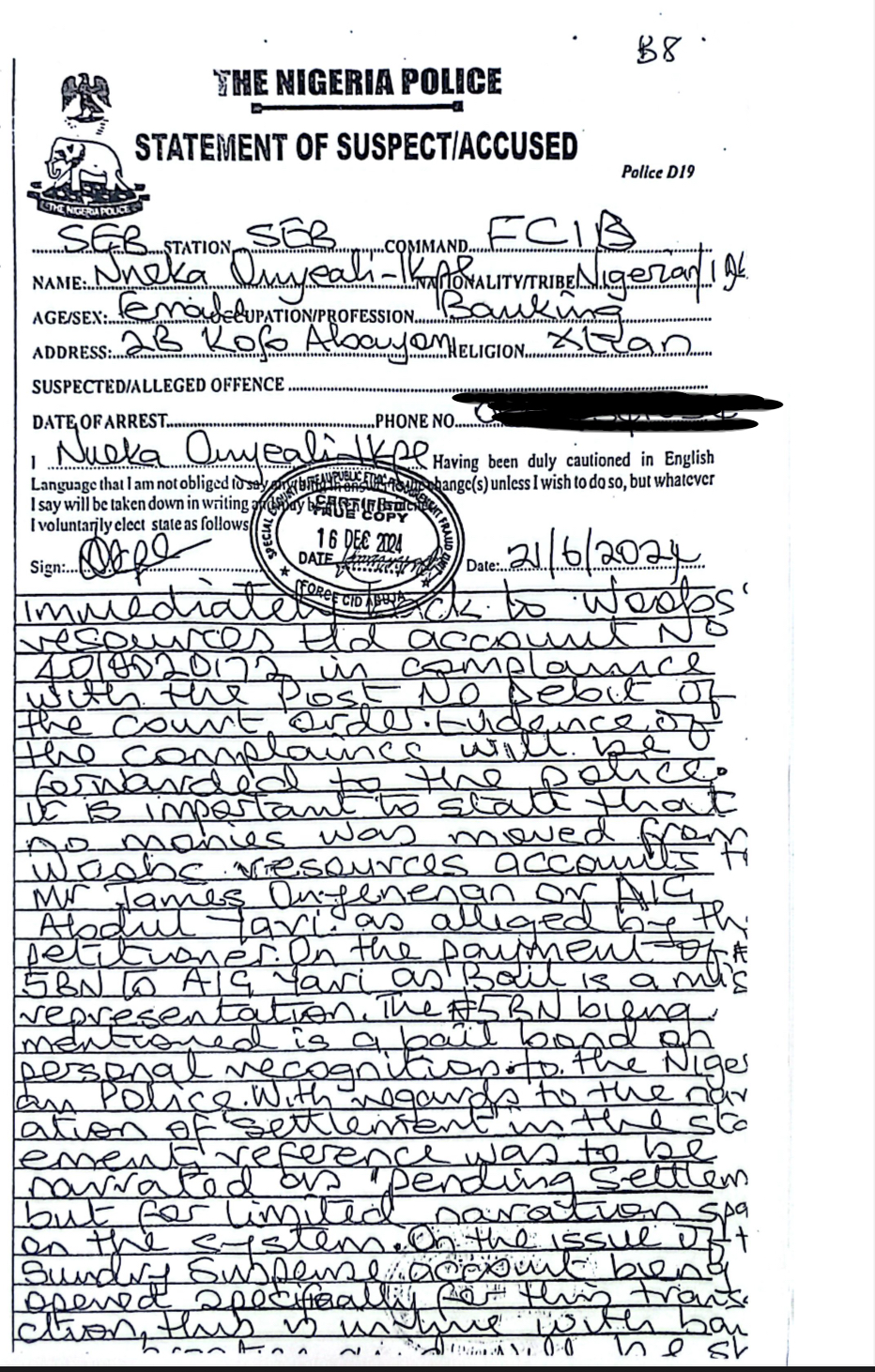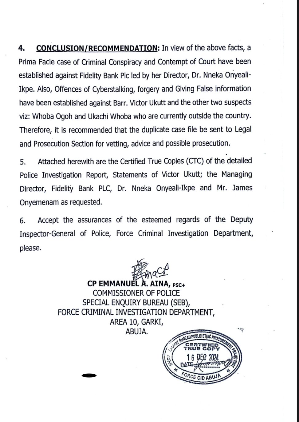 SaharaReporters has exclusively obtained the second statement submitted by the Managing Director of Fidelity Bank Plc, Dr. Nneka Onyeali-Ikpe, to…